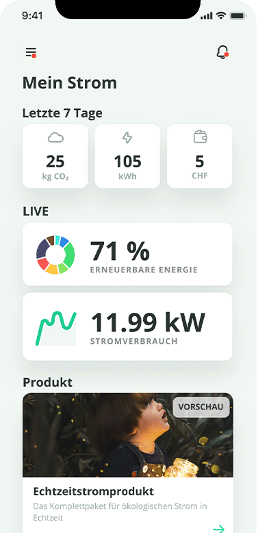 meinstrom live versorgt dich mit Solarstrom aus Uster und Wasserkraft aus der Schweiz. Und zwar so viel, wie du brauchst. Und genau dann, wenn du ihn benötigst.